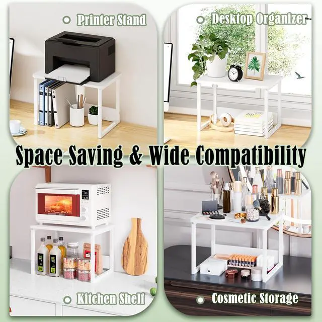 Multifunctional Desktop OrganizerCan be used as a printer stand, laptop riser, book shelf, storage rack, plant stand, spice rack organizer, vanity organizer and so on. It can be used in home, office, kitchen, dorm, craft room as an ideal organizer and storage.