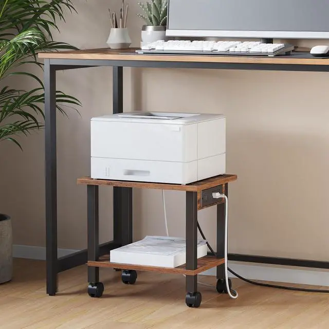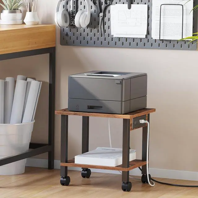 [Printer Holder] The 2 tier printer stand' s spacious top tabletop and bottom shelf provide extra space. You can place them off the desktop for easy access, which is flexible and convenient to free up more workspace, thus keeping the desktop tidy and creating a more comfortable working environment.