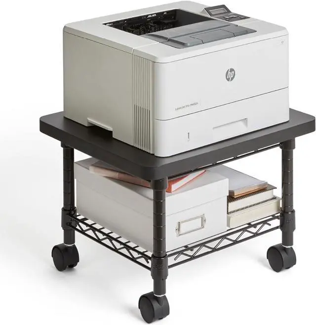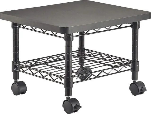 COMPACT DESIGN. Safco Under Desk Printer Machine Stand holds printers, scanners and fax machines within easy reach, but off your desktop. The cart fits neatly under most desks, freeing up valuable floor space. The bottom shelf holds paper, toner or other supplies for quick access.