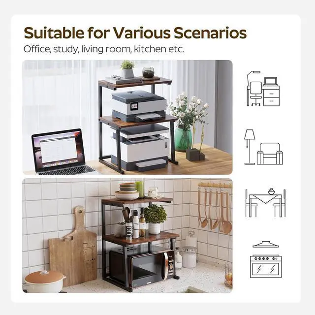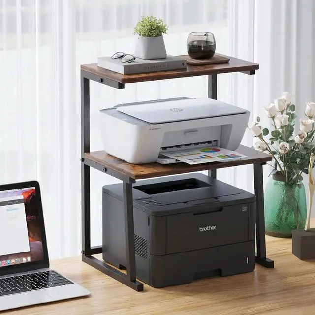 Multilayer Design: Specially designed with a universal size top shelf to securely fit most home office printers, scanners, and all-in-one machines. The 3-tier design offers ample space to organize not just your printer, but also paper, ink cartridges, folders, and other desk essentials, all within arm' s reach.
