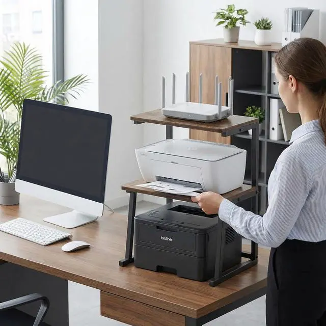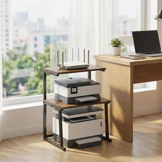 Sturdy & Durable: Built to last with heavy-duty steel frame and a high-quality engineered wood top platform. This stand features a reinforced design and non-slip feet to ensure superior stability and safety for your valuable office equipment, preventing shakes or wobbles during use.