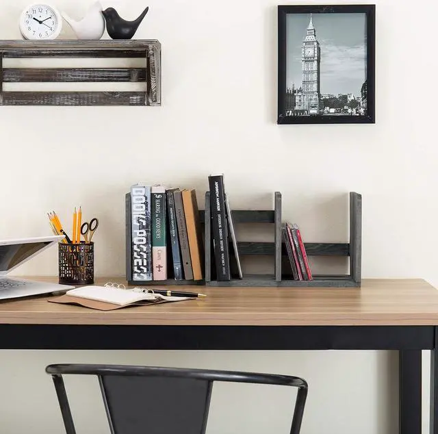 Expandable width desktop bookshelf perfect for storing your favorite books, cookbooks or magazines