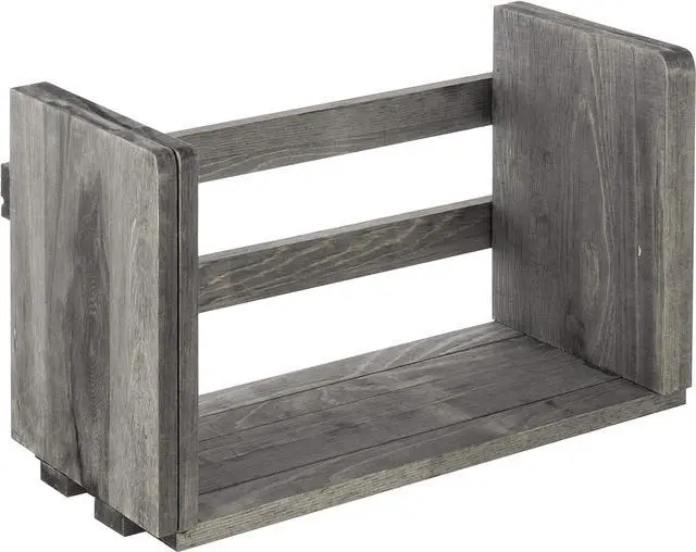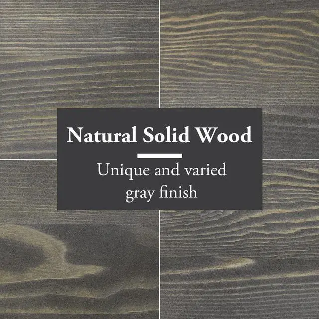 Made from durable wood and stained with a rustic gray brown finish, providing contemporary style