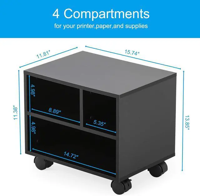 Multi-Purpose Printer Stand: Fax machine, printer or scanner are supported to be placed on the top of the stand, multiple compartments can store paper and other supplies. When you remove the wheels, it will transform itself into a desktop organizer and can be stacked.