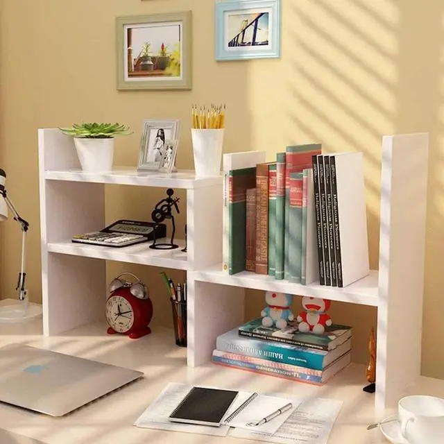 Space-Saving Design for Compact Desks: Slim-profile table top shelf fits compact spaces. Vertical storage design transforms cluttered desks into organized workstations - ideal book organizer for desk setups in home offices/dorms.
