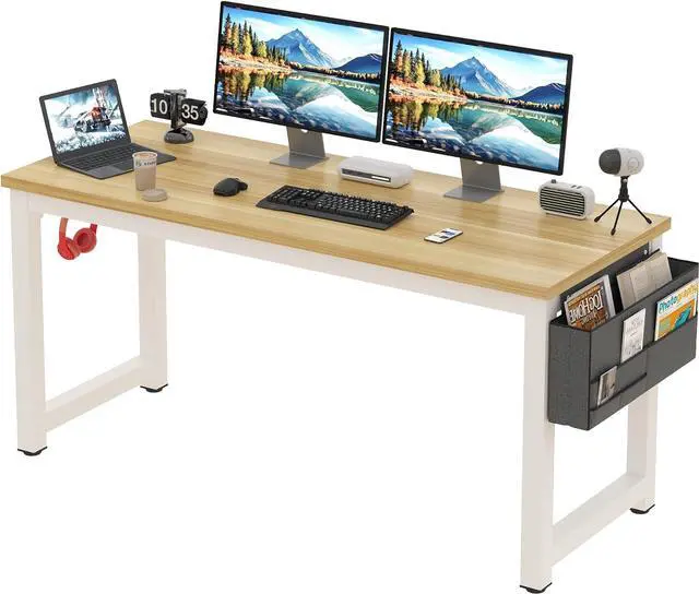 [Super Sturdy] This Computer table with heavy duty powder coated steel frame, two extra steel support bar and triangular junction design ensure stability and durability, 1.97 " by 1.97 " width strong enough to support heavy duty parcels, the office desk is made of high-quality high-density wood, with 1" thick desktop, can bear up to 1000 lbs.