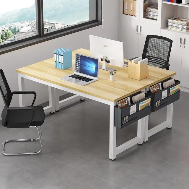 [ Spacious Computer Desk ] Large computer desk with spacious tabletop of nearly 24" deep computer desk provide plenty of space for your home office and meet all your work and study activities, also very perfect for conference room, reception room as a conference table or home office as a large workstation. It is suitable for various users e. g children, teenagers, students, and teachers, serving as a study work desk in liveing rooms, bedrooms. 29.5 " tall desk gives enough space for the legs and can easily place the bookcase and computer host.
