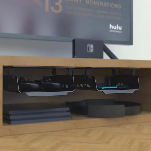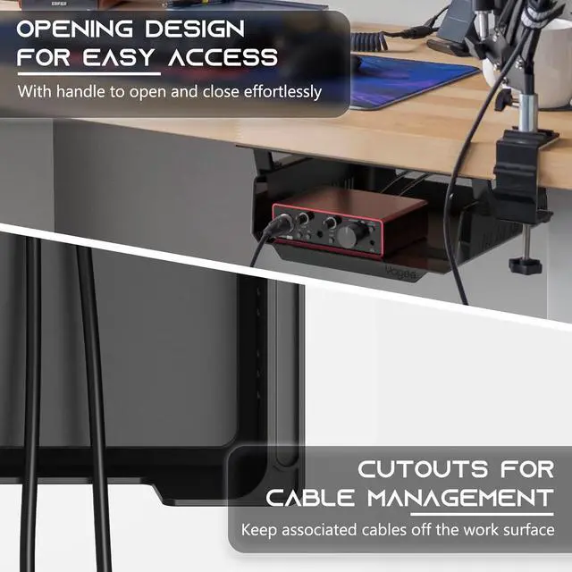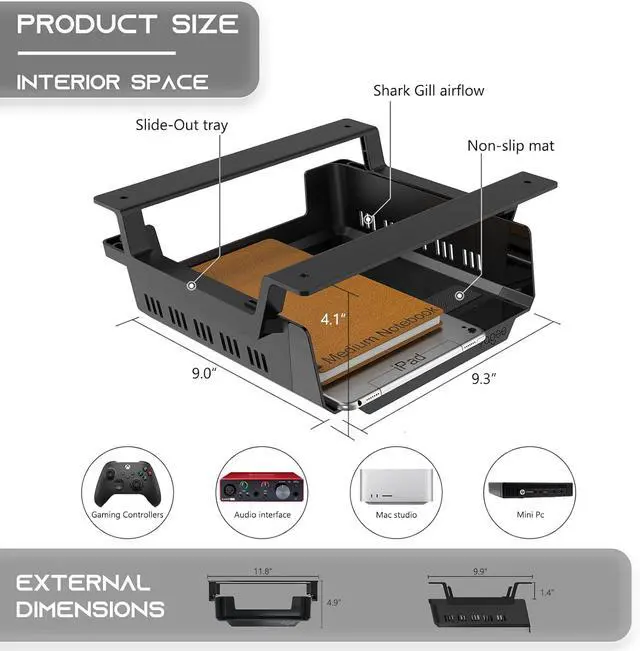 Adds under-desk storage in seconds: The ideal desktop device stations supports self-adhesive less than 11 lbs and screws up to 22 lbs. ( Extra Strength Self Adhesive Tape & Screws included)