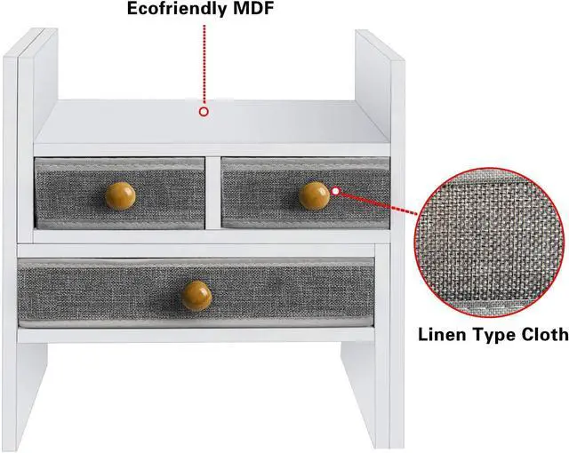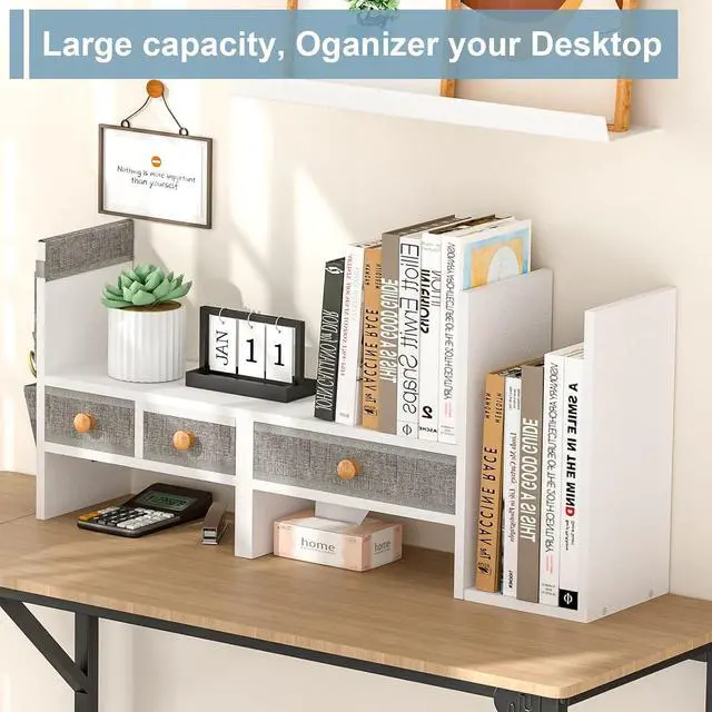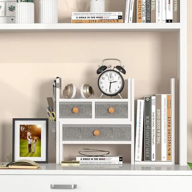 Eco-Friendly Design: This white desktop bookshelf is made from high-density MDF and linen fabric, ensuring it' s non-toxic, eco-friendly, durable, and sturdyperfect for creating a healthy and stylish workspace at home or the office.