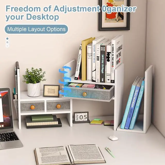 Adjustable Design for Maximum Flexibility: The bookshelf' s length and angle are adjustable, giving you the flexibility to create additional storage space for books, documents, photos, plants, and more. Perfect for customizing your storage setup to fit your needs.