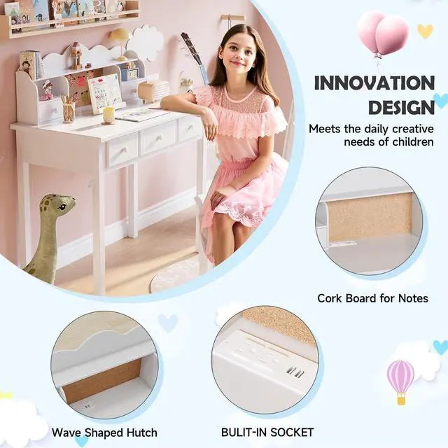 ATTENTION: We are now defaulting to shipping the new version desks! The new desks added sockets and cork boards (with 4 Drawing Pins) which can be used to stick various labels and provide power for lamps, ipads, computers and other study tools