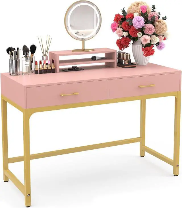 REMOVABLE MONITOR STAND: This 2-in-1 women makeup desk with removable monitor stand. This makeup table can be used as a computer gaming desk or office desk. The elevated shelf can place your computer monitor, laptop, mirror, etc.