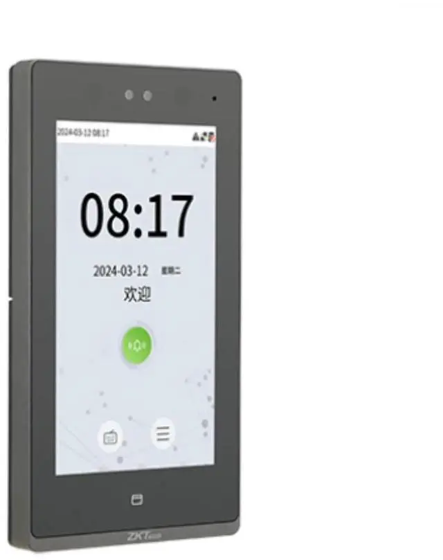 • The zFace1702 is a facial and fingerprint access control terminal developed by ZKTeco in response to market demand. It employs a high-speed visible-light facial recognition algorithm paired with a dual-lens megapixel HD camera to accurately identify personnel and enable swift access. Utilising under-display optical fingerprint recognition technology, it significantly enhances the device's resistance to ambient light interference. The unit also features standard IC card reader functionality, with verification methods freely combinable. This product features a 7-inch high-definition touchscreen with a wide viewing angle and enhanced touch sensitivity. Boasting IP65 all-round protection, it ensures worry-free daily operation. It integrates door sensor and alarm functions alongside access control capabilities, supporting interconnection with indoor units and wireless doorbell receivers. This enables one-touch calling, video intercom, call recording, remote door opening, and doorbell alerts, delivering outstanding performance suitable for diverse application scenarios.