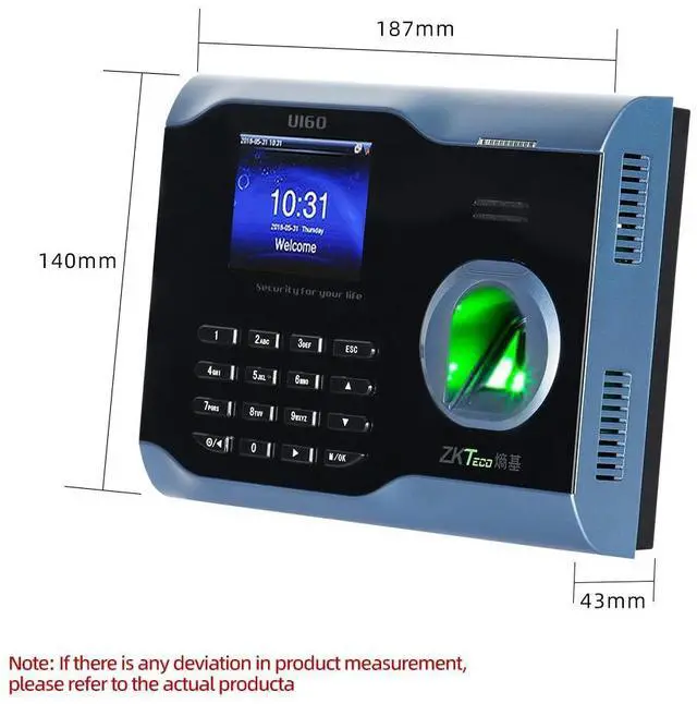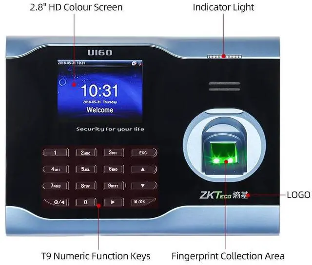 U160 is an innovative biometric fingerprint reader for Time & Attendance applications, offering unparalleled performance using an advanced algorithm for reliability, precision and excellent matching speed. The U160 features the fastest commercial-based fingerprint matching algorithm and ZK high-performance, high-image quality optical fingerprint sensor. The 3\' TFT can display more information vividly, including fingerprint image quality and verification result etc. TCP/IP communication is standard and make sure the data transmission between terminal and PC can be easily done within several seconds.