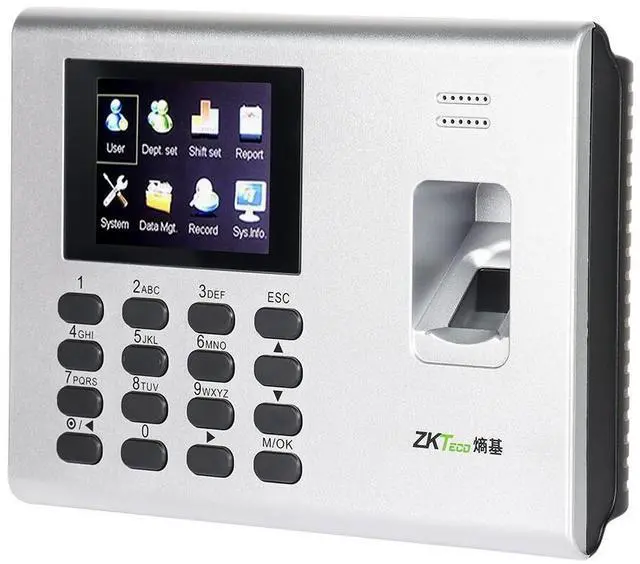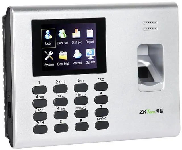 K40 simple time attendance terminal. It brings innumerable surprises, including the stunning GUI, rock-solid stability, fast matching speed and expandability. Users can easily manage data by networking K40 via TCP/IP, USB Host or USB Client. Most importantly, all the functions can still operate in a networking state. K40 is compatibility with various types of USB flash disks and former SDK. U can get the excel report directly from USB flash disks depends on SSR functions.It also supports data backup and retrieve to avoid the risk of accidental deletion. It promotes the fingerprint time & attendance management to the next level. You can get the best of benefits from the K40.