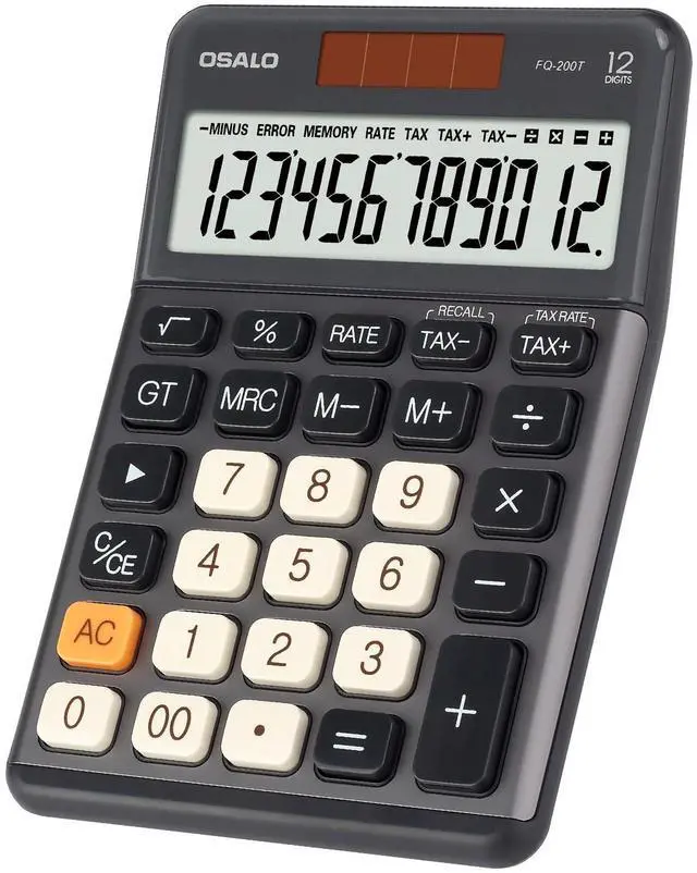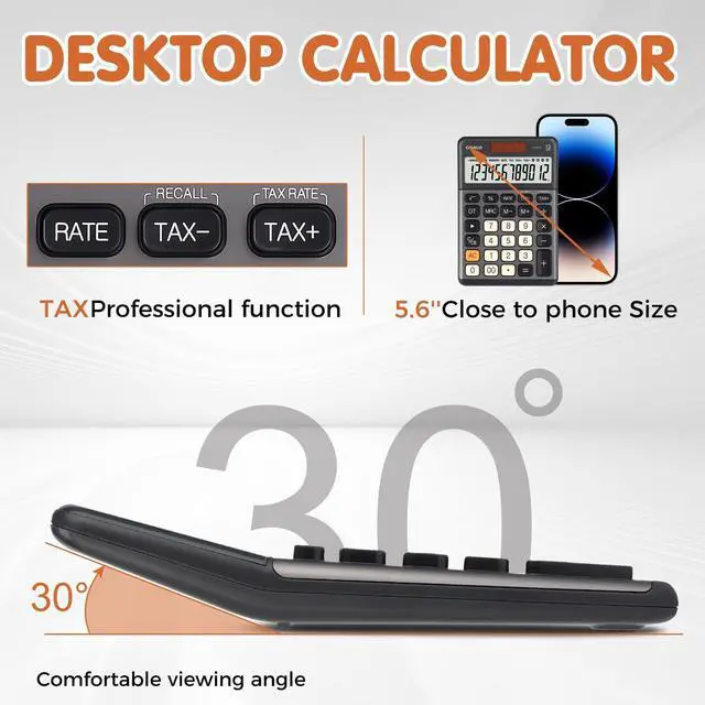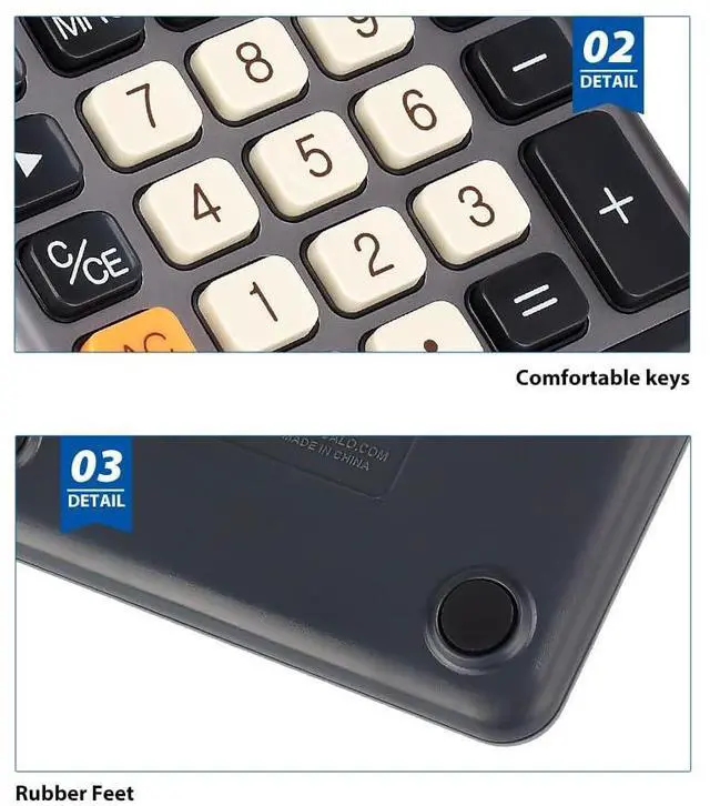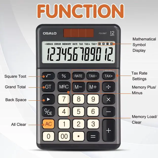 - [Durable Construction and Portability] Made of high-grade metal panel and durable ABS buttons, this 12-digit calculator is lightweight yet durable, capable of withstanding multiple impacts from desktop height. The large, clear LCD Display offers crisp, easy-to-read numbers, minimizing eye strain and ensuring professional-grade performance whether at home, in the office, or while traveling.
