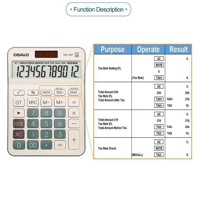 Example:If you want to calculate [2*3+3*5+6*8],press [2*3=],then [3*5=],then [6*8=].Then press [GT],you will get the right answer 69.