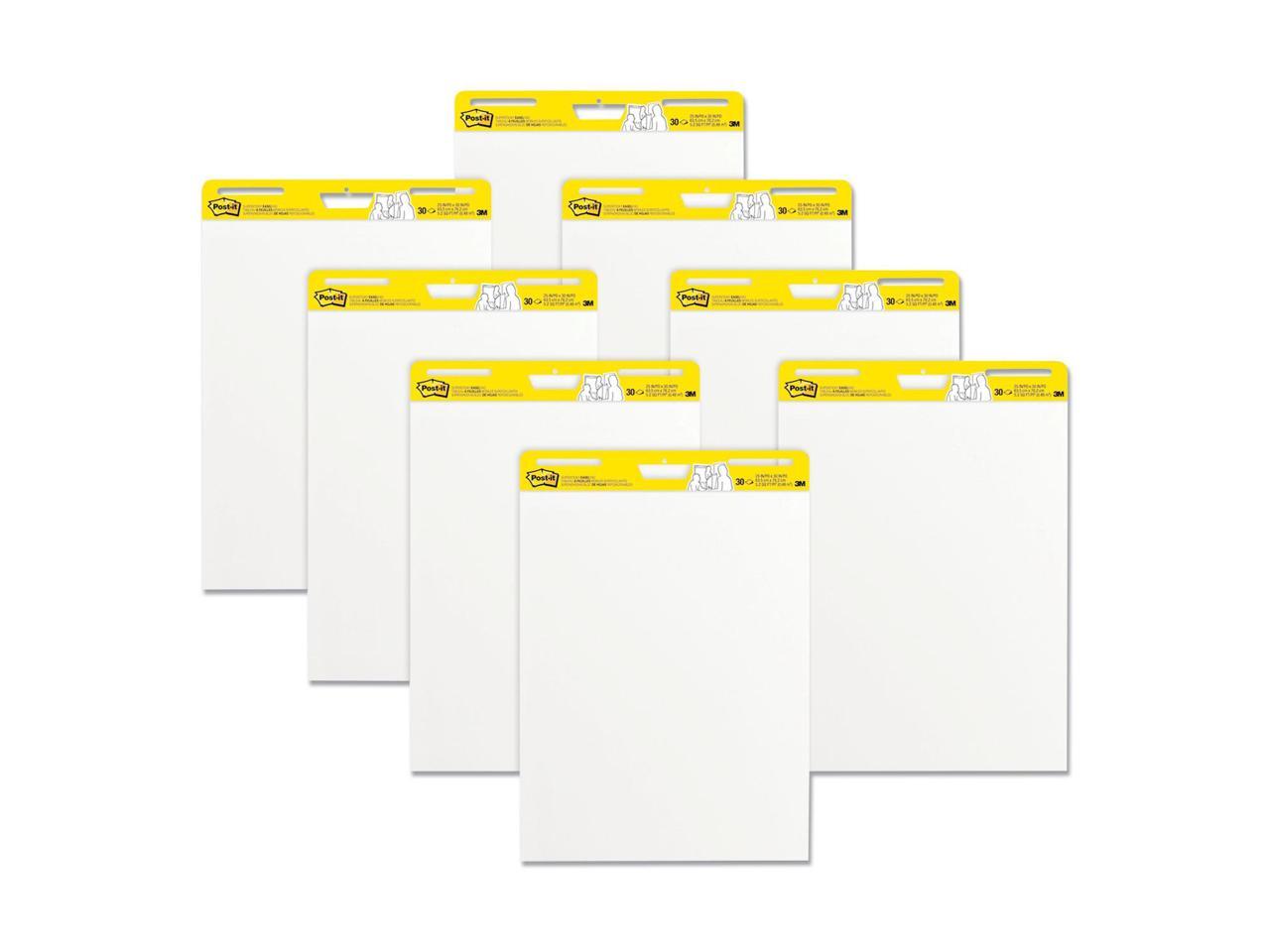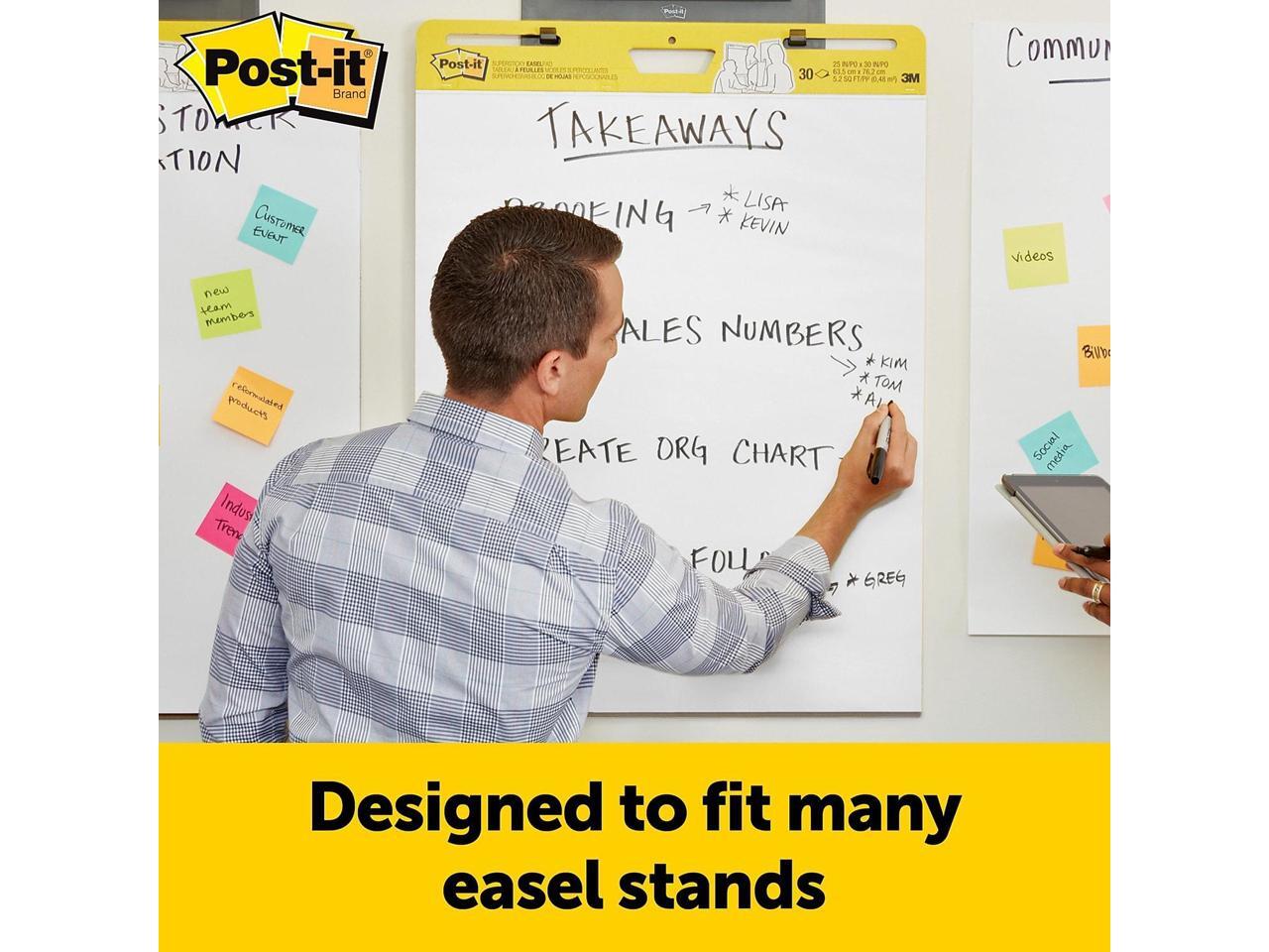 - STICKS SECURELY AND HOLDS UP TO 2X LONGER - Easel paper can be repositioned without surface damage. No tape or tacks needed unlike standard flip chart paper. Keep agenda and ideas where everyone can see. LARGE WHITE PREMIUM PAPER - 25 in. x 30 in., 30 Sheets/Pad, 8 Pad/Pack. EXPLORE SIZES - Post-it Super Sticky Easel Pads also available in more sizes - Mini Easel Pad, Tabletop Pad and Wall Pad.