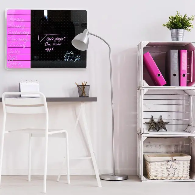 Floortex Viztex Dry-erase Magnetic Glass Whiteboard - Soft Violet - 17" ( 1.4 ft) Width x 23" ( 1.9 ft) Height - Soft Violet Glass Surface - 1 Each Dry-erase board features a durable glass surface that wipes down easily to prevent leaving behind any smudges. Magnetic backing allows you to conveniently attach magnetic erasers or display papers with magnets. Grid and ruled surface makes it easy to write down lists or draw designs. Frameless design creates a sleek, professional appearance to blend conveniently into nearly any environment.