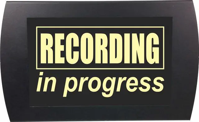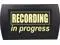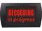 Classic RECORDING IN PROGRESS sign with nostalgic microphone graphic. A must for any professional or home recording studio.
