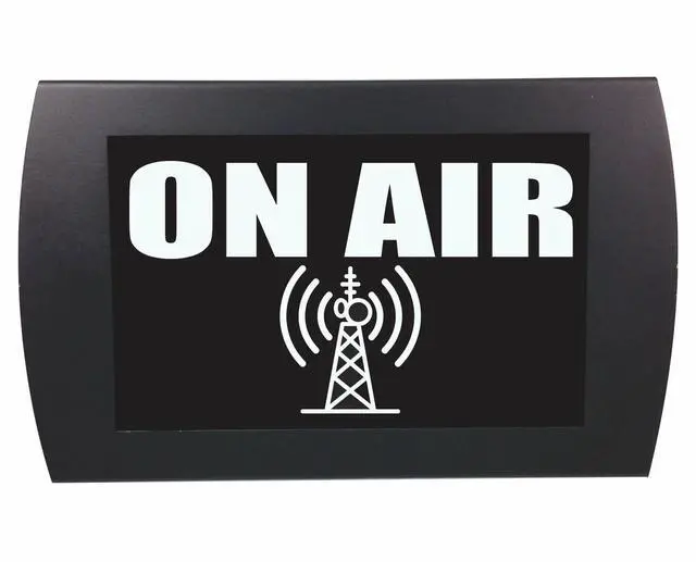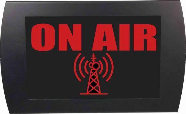 It is our classic ON AIR sign with cool antenna graphic. A must for any radio broadcast or podcast facility.