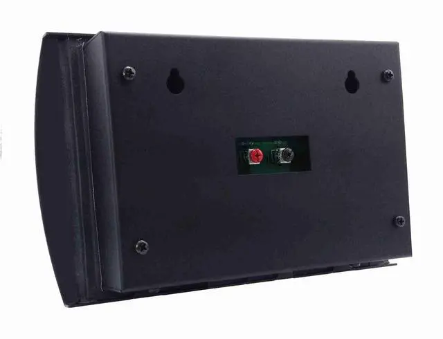 Enclosure is manufactured from steel and aluminum with attractive curved edges and a durable flat black powder coated finish.