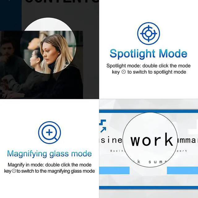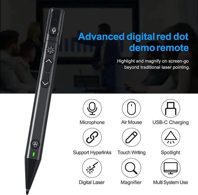 [Highlight and Magnify on Screen]The presentation clicker supports Highlight, Magnify, Spotlight, Play/Pause, Hyperlink/Volume Control, Electronic Mark, Switch/Close Window, Full Screen/Black Screen, Page Turning/Page Turning, etc. The presentation remote go beyond traditional presentation clicker. The powerpoint clicker use the advanced pointer system to precisely highlight or magnify areas of focus in pixel-perfect detail.