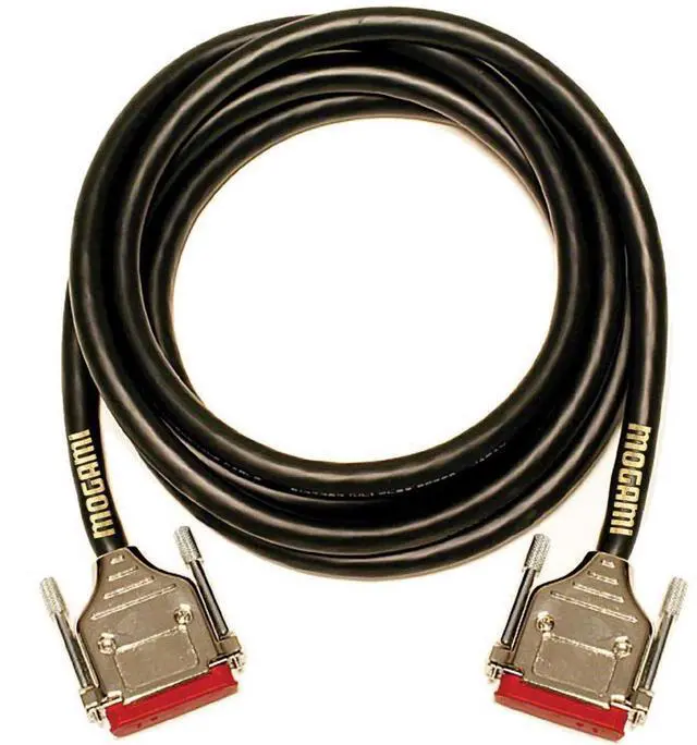 The Mogami 3' Gold 8-Channel AES Yamaha Tascam/Digi Format DB25 Male to DB25 Crossover Cable meets AES/EBU specifications with 110 ohm impedance. Its Cellular PP (polypropylene) insulation material results in lower attenuation. It is designed to connect an Apogee, Mackie, Yamaha AES in/out to a Digi or Tascam pinout machine. This AES format crossover cables for flawless digital transfer between recording machines with different wiring protocols. 8-Channels in and out. It is based on Mogami's own #3162 AES Cables.