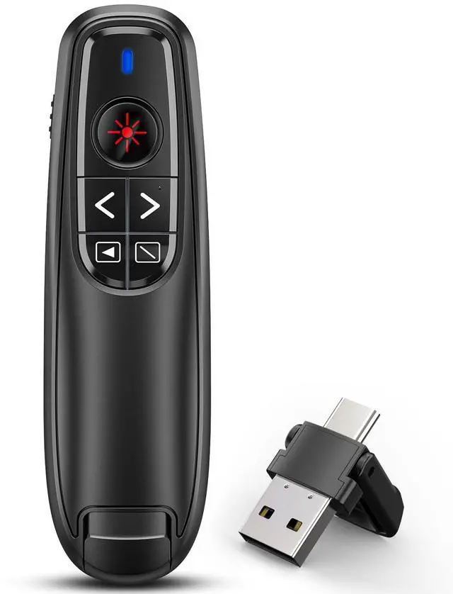 2-in-1 USB Type C Presentation Clicker Wireless Presenter Remote Clicker for PowerPoint Presentations with Pointer, RF 2.4GHz USB C PowerPoint Clicker Slide Advancer for Computer/Mac/Laptop