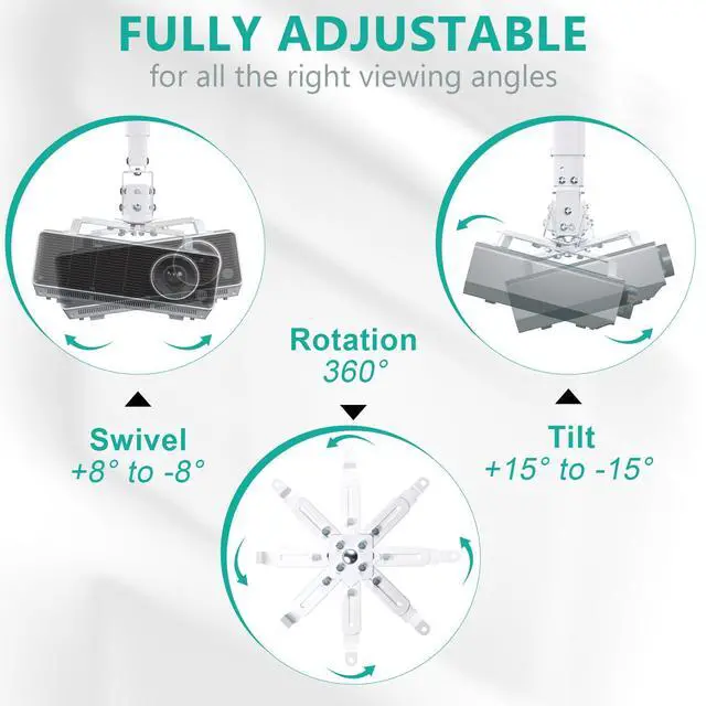 The adjustable pole and arm can better fix your projector and provide you with a better viewing experience.