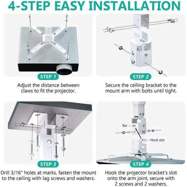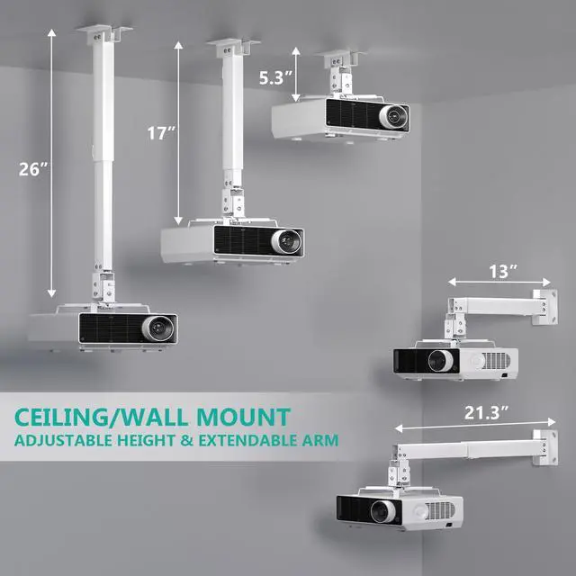 The universal projector mount bracket can be mounted on ceiling or wall. Provide you with more choices when installing.