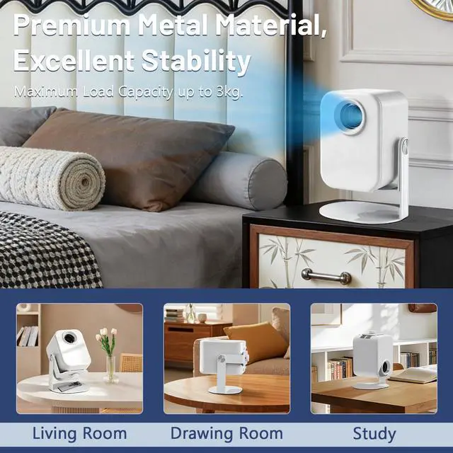 Foldable Design & Compact: At just 1.4 lbs, its incredibly portable, yet provides a sturdy, non-slip base that holds firm on desks, shelves, or glass tables. Whether at home, in the office, or outdoors, you can enjoy high-quality projection anytime and anywhere.
