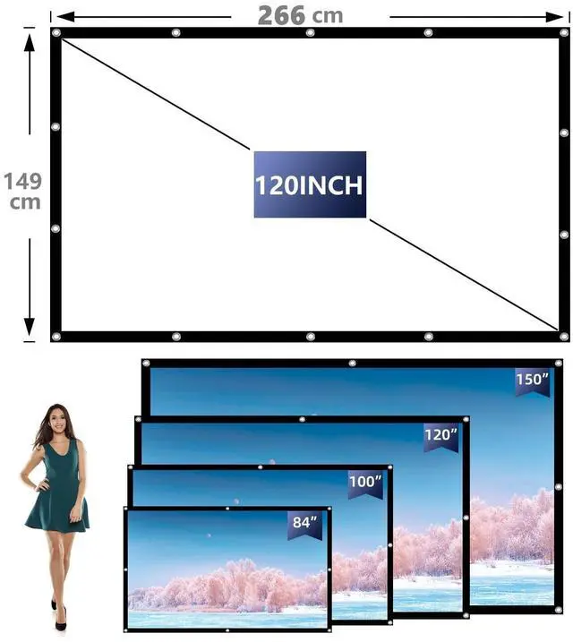 60/72/84/100/120/150inch Portable Projector Screen with double-sided projection