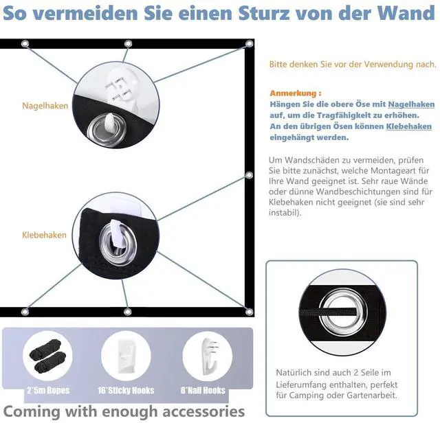 Warm Tips to Using Projector Screen:Please use the outdoor projector screen hanging in a dark environment because the light will affect the projection effect.