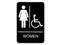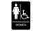 Universally and easily recognizable white graphics. Raised tactile graphics with grade 2 braille. Meets Americans with Disabilities Act (ADA) requirements. Includes double-side adhesive tape for mounting to door or wall. Frame Color: Black; Size: 6 x 9; Message(s): Women (with Wheelchair); Material(s): Plastic.