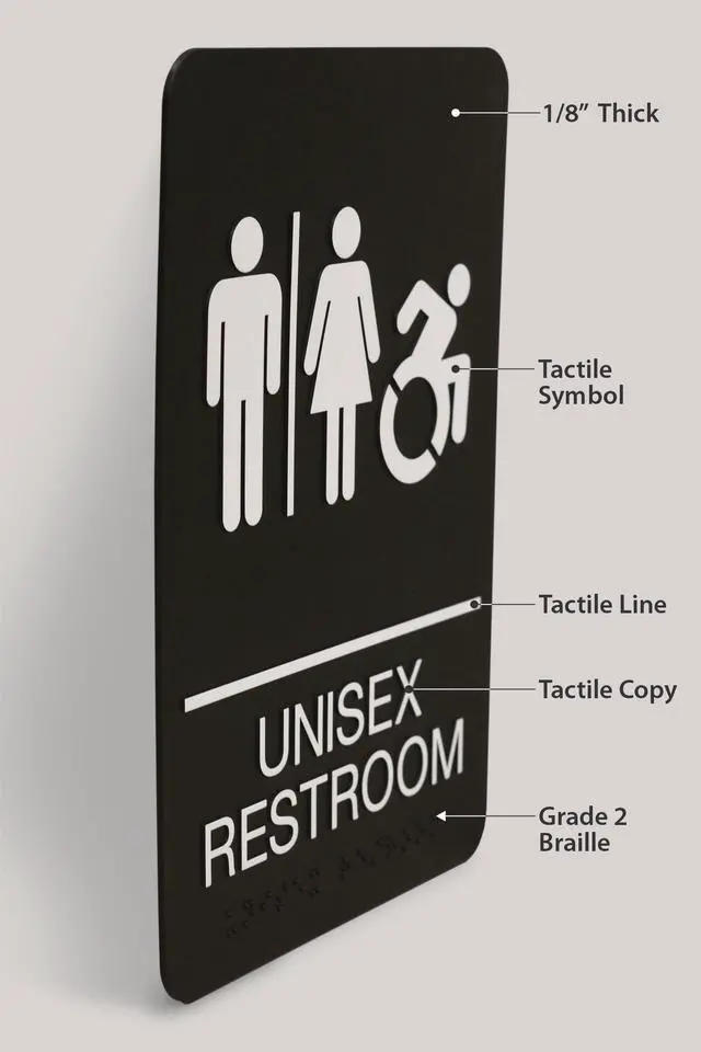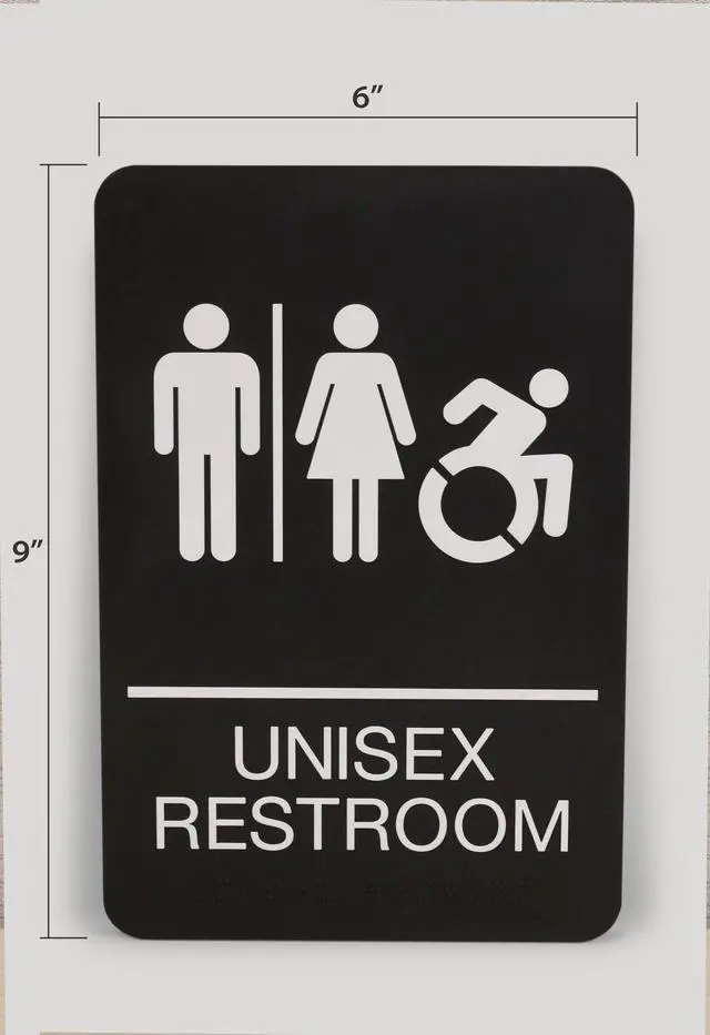ADA Sign Unisex Restroom 6 x 9 Black Face White Graphics 7772