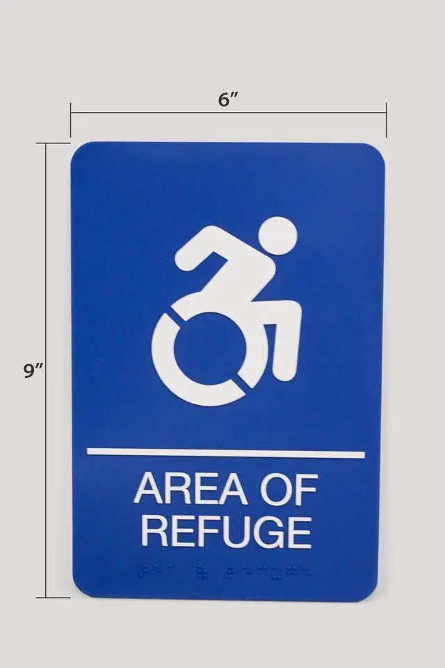 ADA Sign Area of Refuge 6 x 9 Blue Face White Graphics 7783