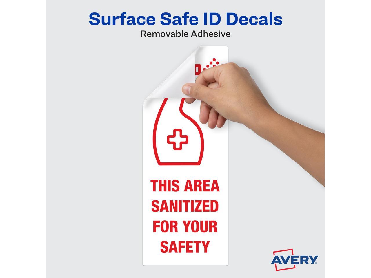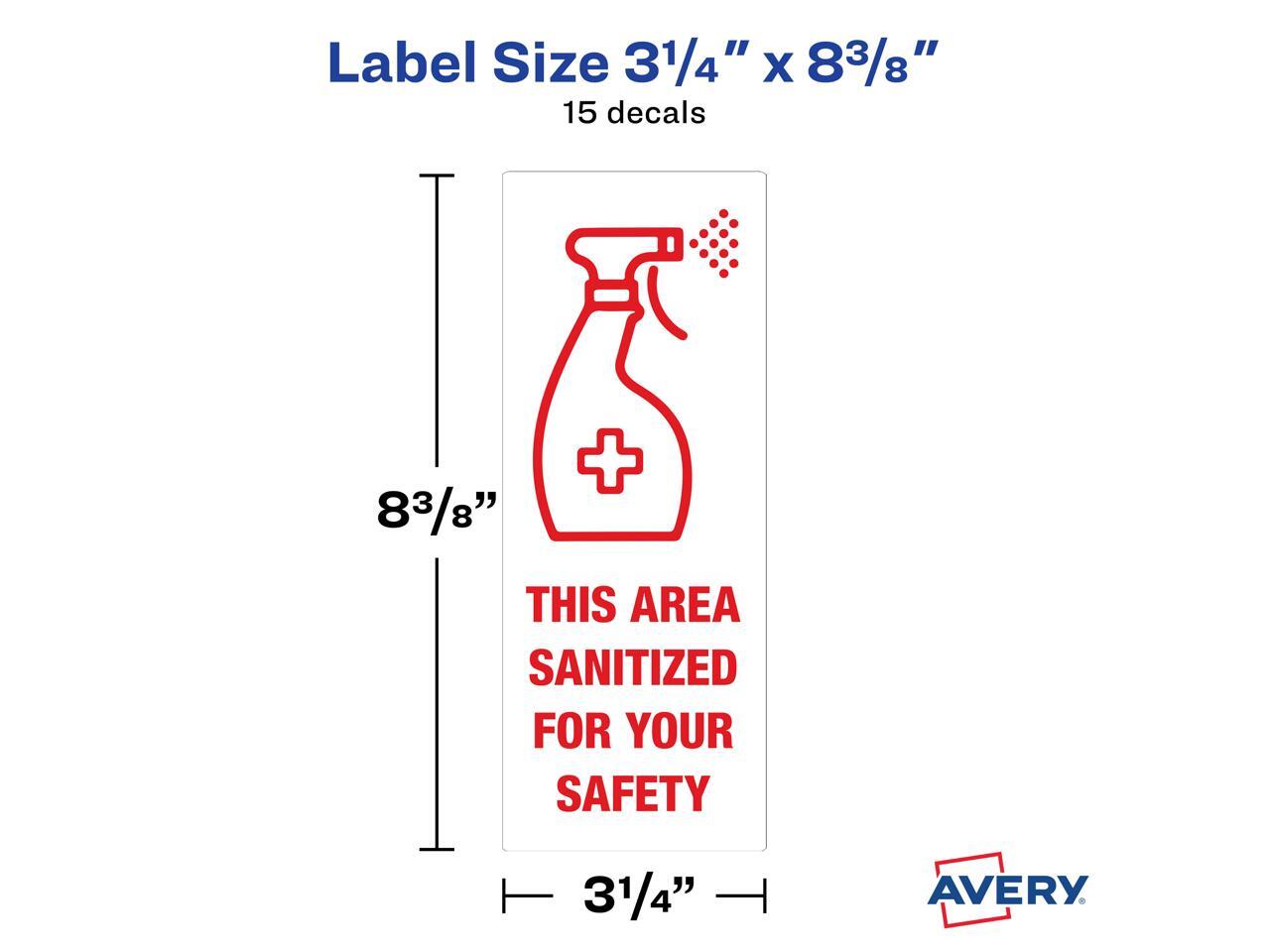 Avery "Area Sanitized" Signs, 3-1/4" x 8-3/8", 15 Decals (83080)