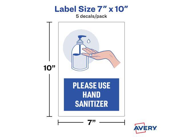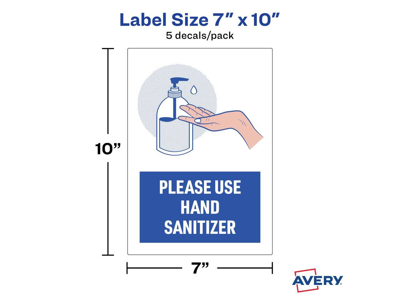 Avery "Please Use Hand Sanitizer" Decals, 7" x 10" (83179)