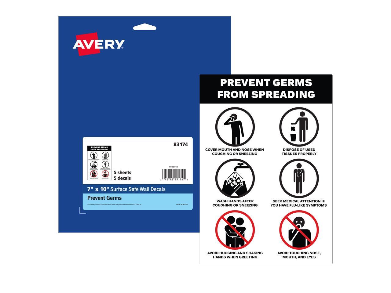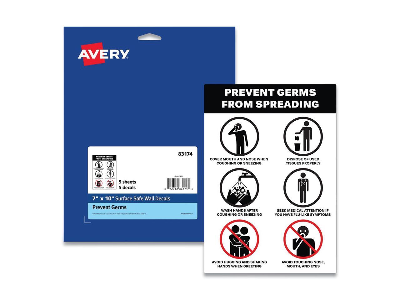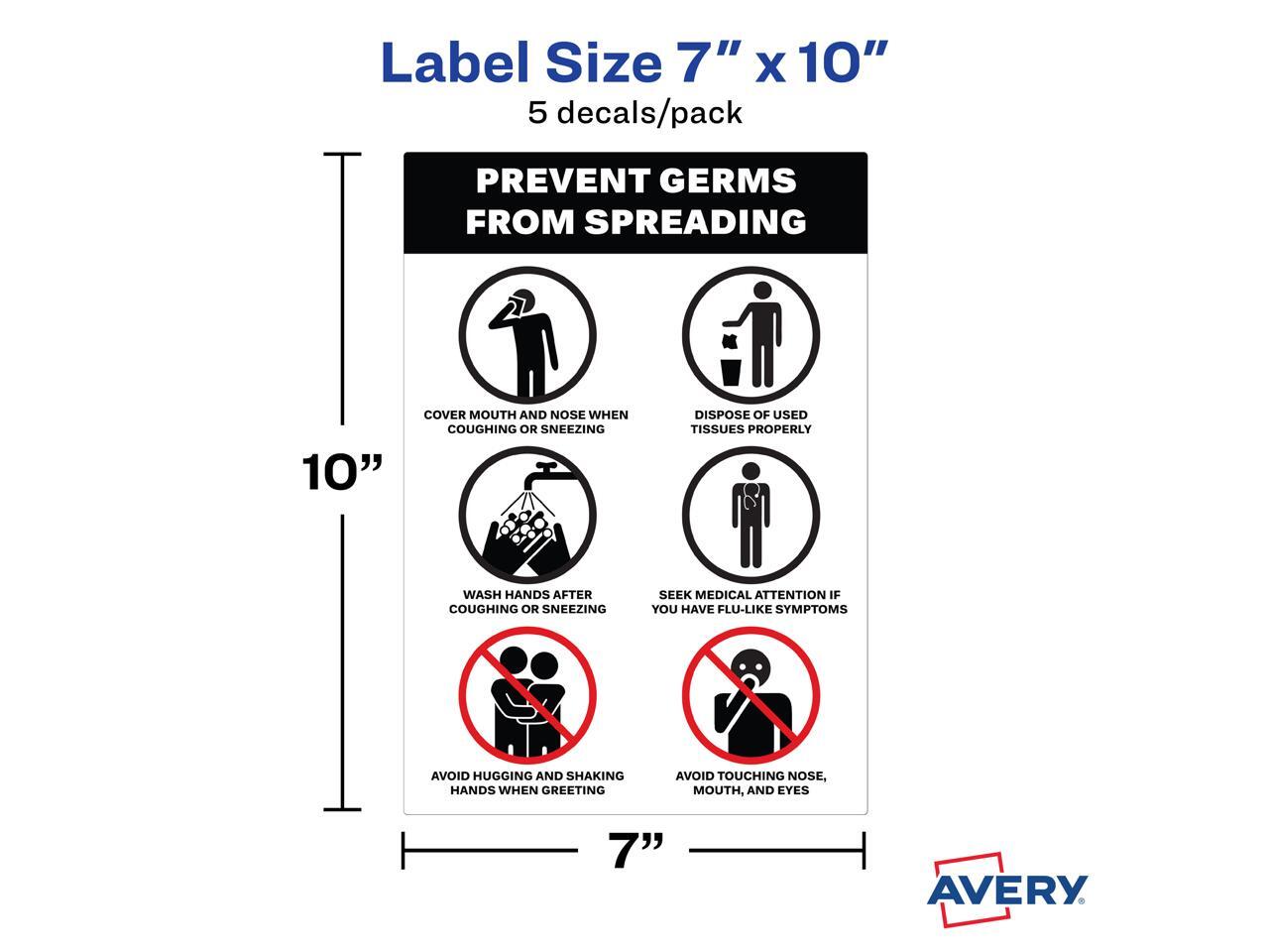 Avery "Prevent Germs from Spreading" Decals, 7" x 10" (83174)