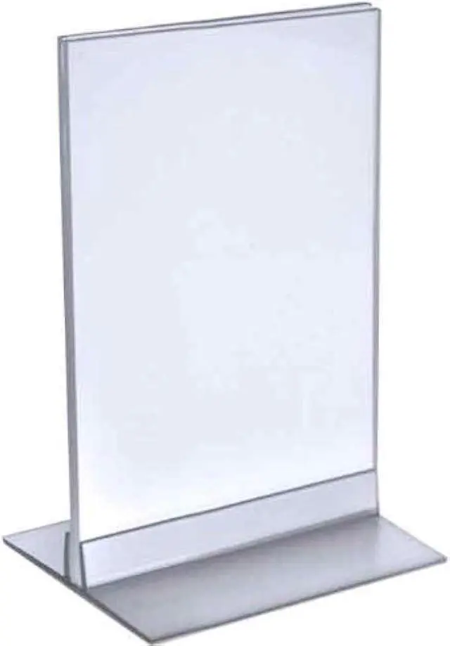 This T-Strip Sign Holder measures 4-Inch x 5-Inch and can be used vertically or horizontally depending on what best suits for your needs. Comes with T-Strip Base. Made of top quality 0.100 -Inch Acrylic and easy to assemble. Sold in packs of 10.