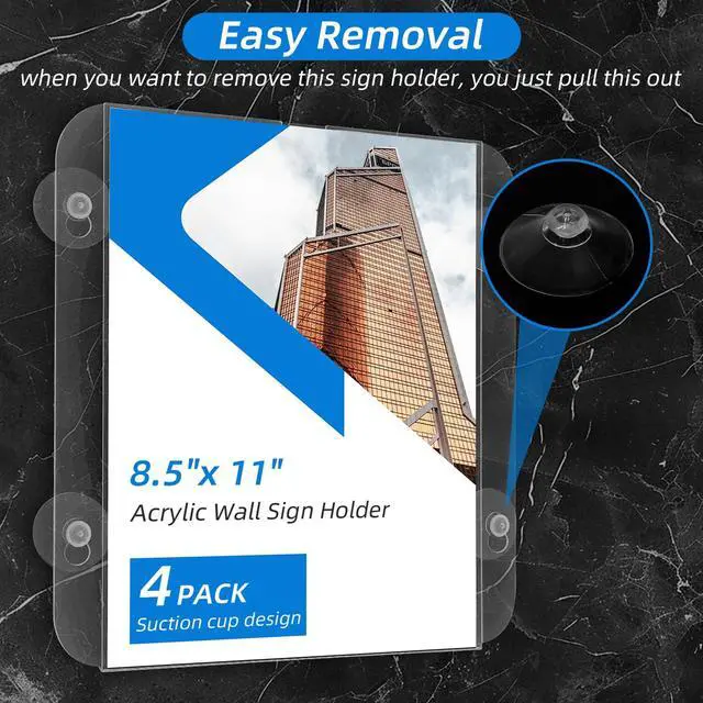 These Suction Cup Sign Holders install quicklyclean the surface, press the cups firmly, and they adhere in seconds. The open top and sides allow easy insertion or replacement of documents without removing the frame, saving time