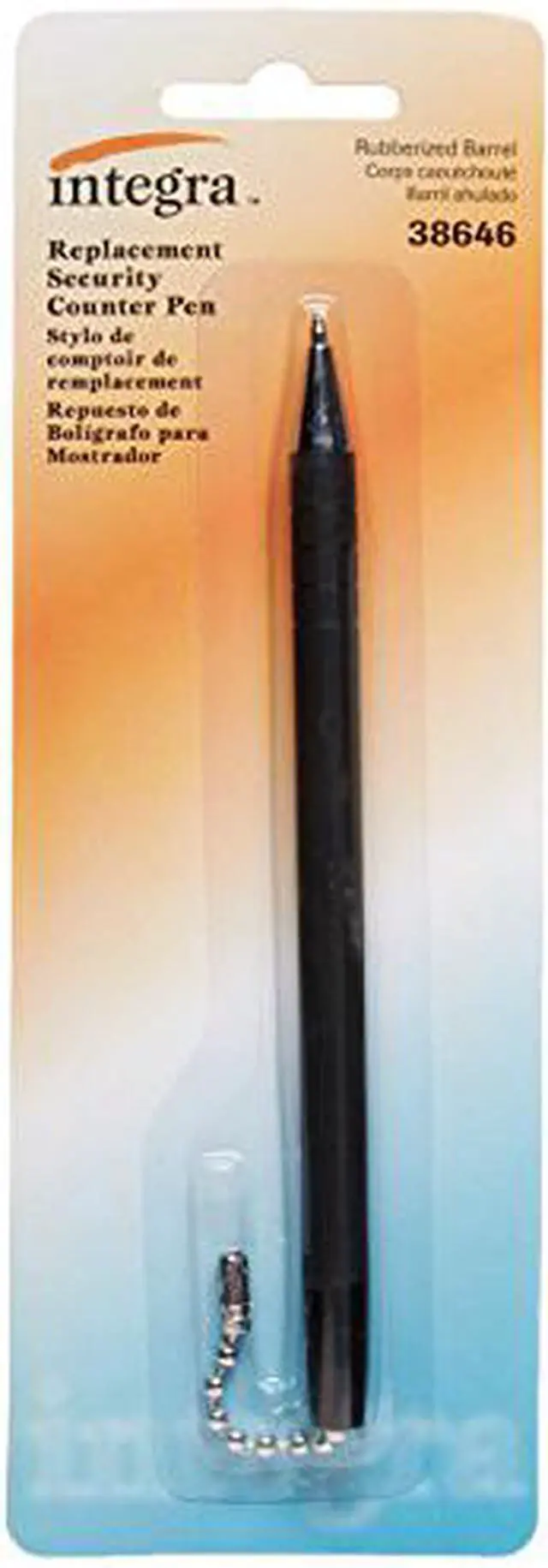 Integra Antimicrobial Replacement Counter Pen - Black - Rubber Barrel - 1 Each Antimicrobial pen replacement features a rubberized barrel for a comfortable grip. Pen uses black ink and is perfect for high-traffic areas where a pen is needed. Metal connection piece easily connects to ball chain.