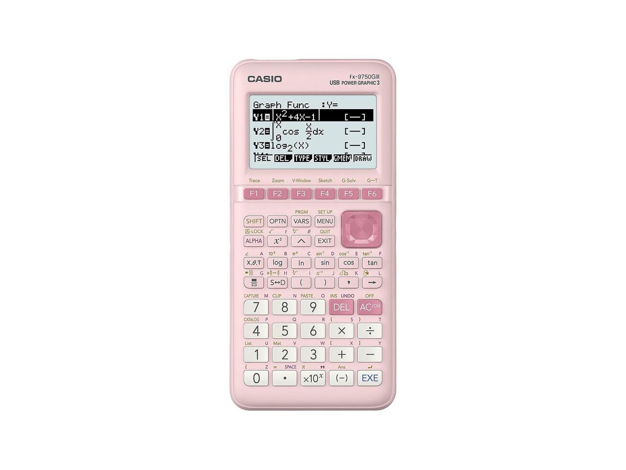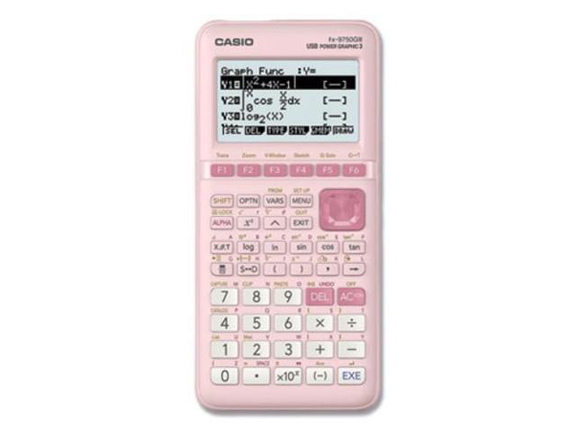 Powered by four AAA batteries. Capable of graphing x= relations, numerical differentiation and integration, prior entry recall, and complex number calculations; create tables of values from given functions and generate plots and graphs from tables; easily calculate values for given independent/dependent values. Comes in pink.