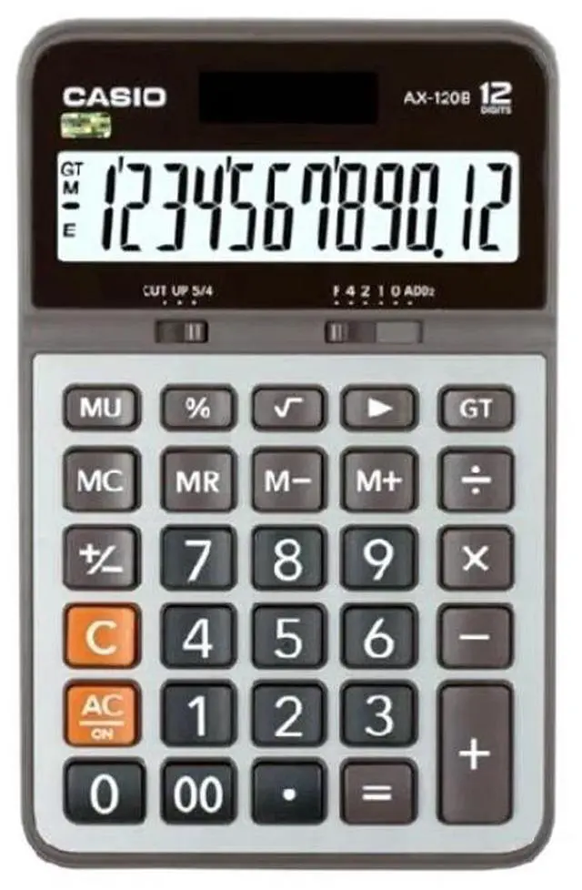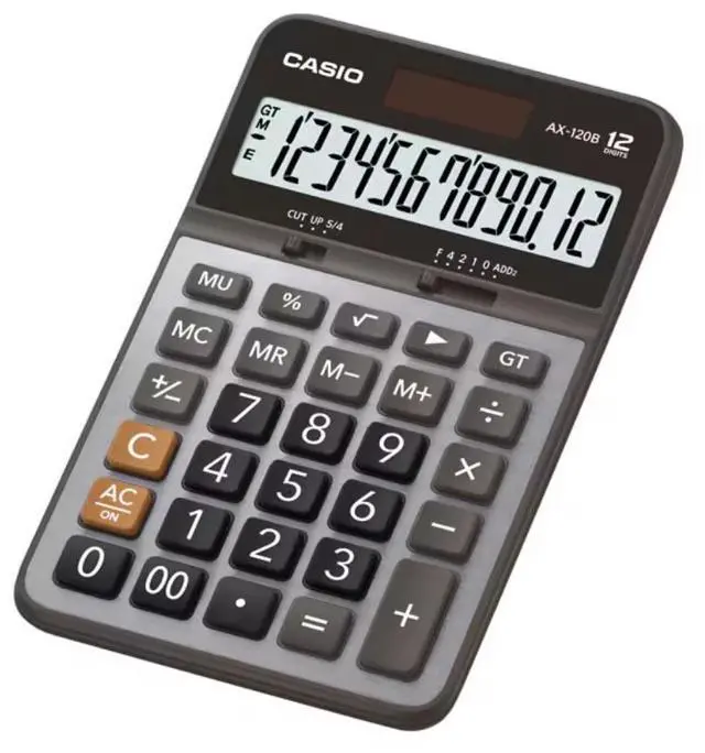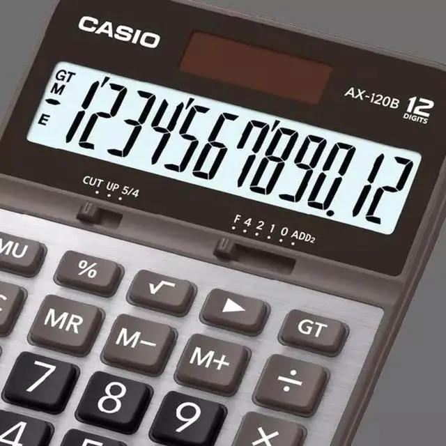 The Casio AX-120B-W is a reliable 12-digit desktop calculator designed for everyday business, accounting, and home use. Its extra-large angled display ensures clear visibility, while the intuitive key layout simplifies fast calculations. Equipped with dual power, tax and profit margin functions, and durable keys, this model delivers long-lasting performance for offices, classrooms, and daily number crunching.