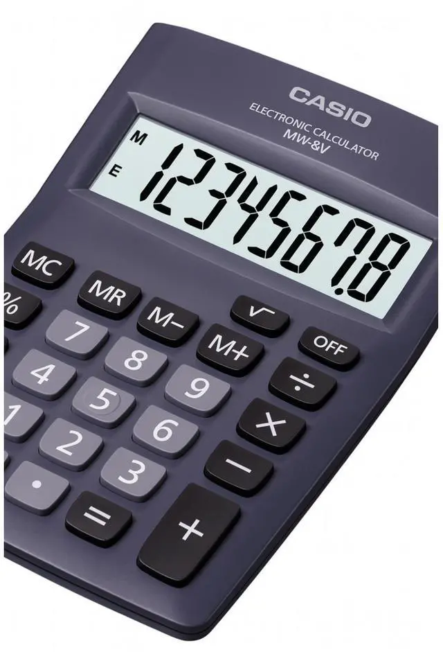The Casio MW Eight Digit Desktop Calculator is designed for simple and reliable everyday use. Its extra large display offers clear readability, allowing you to check calculations quickly and comfortably. The angled screen provides better visibility on any desk, while the well spaced keys support smooth and accurate number entry. Built for office, school, and home tasks, this calculator delivers dependable performance for budgeting, accounting, and general arithmetic. Its compact and durable design ensures it fits easily on a workspace while holding up to daily use.