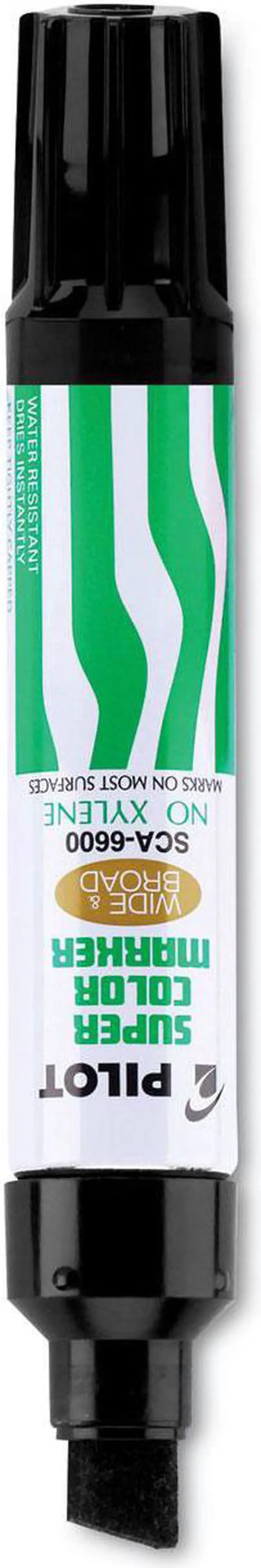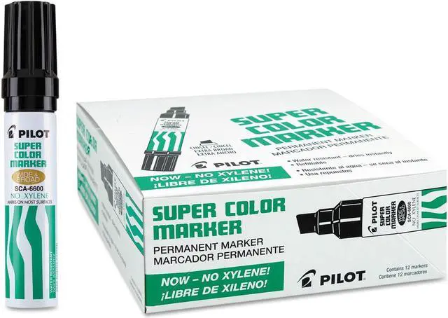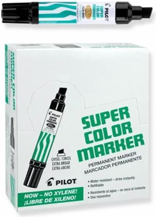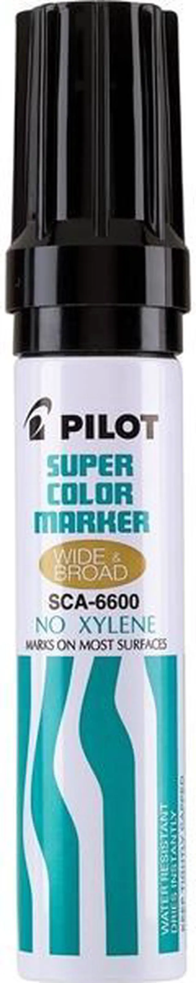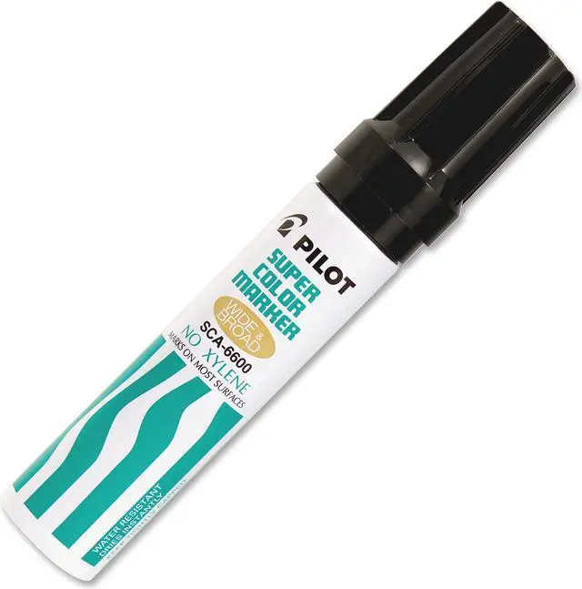 When youre faced with big, tough marking and labeling jobs, choose a wide-barrel marker specifically designed for industrial applications. Professional-grade ink delivery system ensures smooth permanent marking on nearly any flat surface: wood, glass, metal, plastic, paper, etc. Specially formulated, low-odor, xylene-free ink dries within seconds. Compatible with Pilot Super Color Marker refill ink (sold separately). Marker Ink Type: Permanent; Marker Tip Type: Chisel; Marker Tip Size (text): Broad; Marker Color(s): Black.
