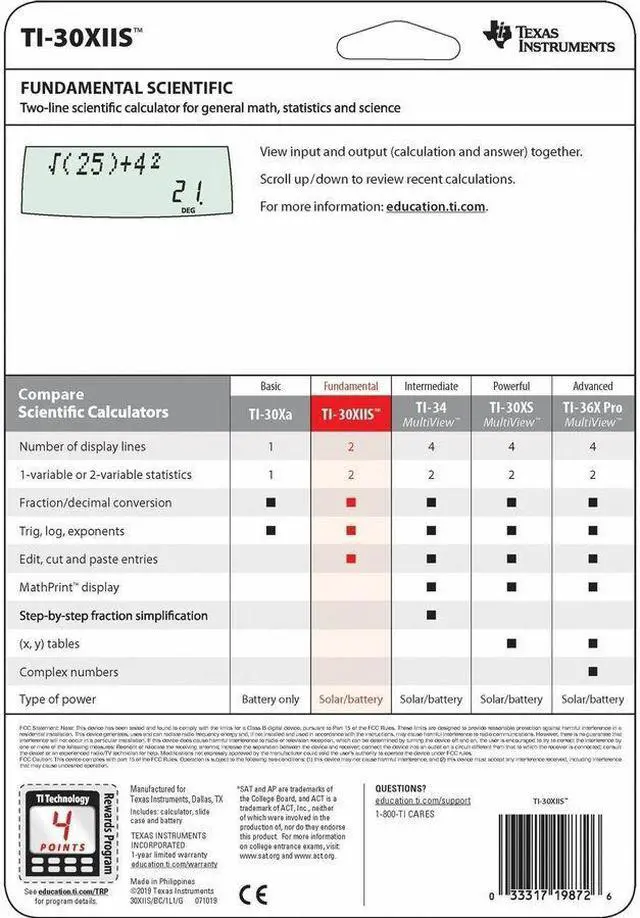 The TI-30XIIS™ scientific calculator is approved for use on SAT, ACT, and AP exams.