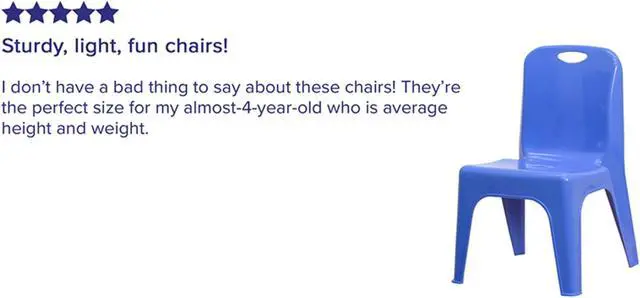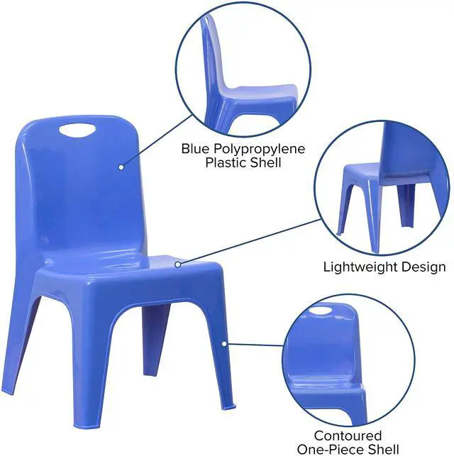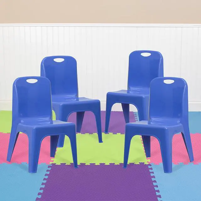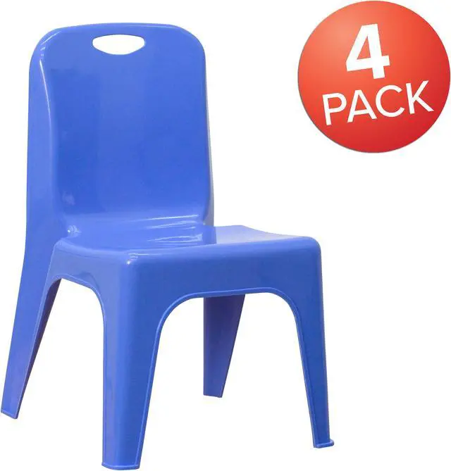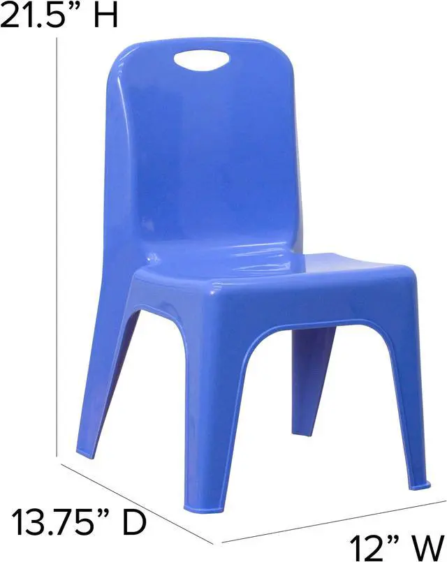 Designed for everyday seating, this colorful plastic stack chair provides seating for your daycare, kindergarten classroom and home. Having young children sit in a chair that is designed for them is important in developing proper sitting habits that will last them a lifetime. Be prepared for play dates by having additional kids chairs in the playroom, kitchen or storage area. The stackable plastic chair is made of high-impact polypropylene and is designed without the use of any metal pieces to prevent injury. Low in maintenance, these toddler chairs wipe clean with ease after snacks.