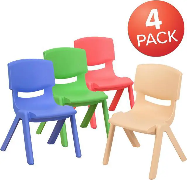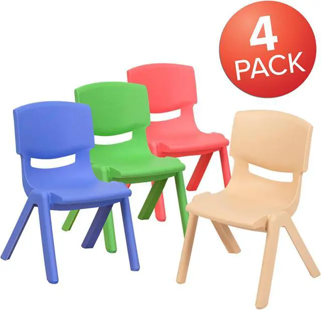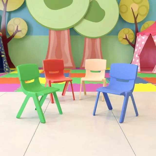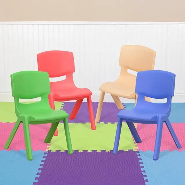 Provide safe seating for developing tots that you care for in your nursery, daycare or preschool. Well suited for the classroom, these assorted colored school chairs have no metal pieces making them safe around energetic preschoolers and kindergartners. Be prepared for play dates by having additional kids chairs in the playroom, kitchen or storage area. The stackable plastic chairs are ideal for extra seating to keep around the home and stack away when no longer needed. Low in maintenance, these toddler chairs wipe clean with ease after snacks. Having young children sit in a chair that is designed for them is important in developing proper sitting habits that will last them a lifetime.